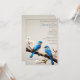 Personalize um programa de casamento de tema floral para seus convidados com um programa de casamento de pássaros-azuis Primavera. O design do programa apresenta um par de pássaros azuis que repousam em um galho de madeira com primavera florescimento contra um fundo texturizado em papel. Personalize com os nomes do noivo e da noiva junto com a data do casamento e a ordem dos detalhes da cerimônia. Material adicional disponível com esta design.