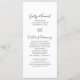 Anuncie a ordem da sua cerimônia de casamento com o programa de casamento Daffodil do Primavera Branco bonito. Personalize-o com os nomes da noiva e do noivo e com os detalhes da cerimônia de casamento da festa de março, abril ou maio e linha do tempo. Este elegante programa nupcial botânico personalizado apresenta uma fotografia floral de uma flor branca de daffodilo com um centro de laranja ou narciso geranium no caule com um fundo bege.
