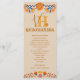 Programa de quinceanera floral mexicano com flores de monograma e fiesta folk art de quince na paleta colorida de champanhe beige azul-rosa e amarelo. Design com tipografia ocidental e uma elegante escrita manuscrita. O modelo é configurado para adicionar seu monograma, ordem de eventos e todas as informações adicionais que você deseja em ambos os lados. Por favor, procure na minha coleção Floral mexicana itens correspondentes ou envie-me uma mensagem para criar as modelos de que necessita.