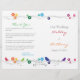 Você pode personalizar o texto sobre o programa de casamento floral, ou programa de ocasião especial, que é divertido, e sobre aves temáticas em cores divertidas, brancas e arco-íris (passarinhos canis, pombos), flores e folhas (vinhas). Para alterar o texto, use a opção personalizar. Para alterações mais abrangentes no programa de casamento, incluindo alterações na fonte, tamanhos de fonte, cor de fonte ou colocação de texto, use a opção personalizar. Uma bela escolha para um casamento temático a cores do arco-íris na primavera ou no verão ou qualquer outra ocasião especial como um aniversário ou festa de aniversário.