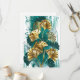 Ramificação com joias, ouro e folhas verdes de Ginko biloba à luz, pintada de fundo verde. Ginko biloba