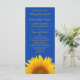 Flor de girassol amarelo e programa de casamento personalizado de barato azul real. A design apresenta um girassol amarelo brilhante e alegre sobre um fundo azul real. Design floral simples e elegante. NOTA: este é um design impresso plano sem nenhum embelezamento em relevo ou em 3D. Para alterar o texto, use as opções personalizar. Ou, para alterações mais abrangentes (fonte, tamanho da fonte, cor da fonte, posicionamento do texto), escolha personalizá-la. Você pode até mudar a cor azul real do fundo, se quiser. Este é um programa de casamento barato e excelente para um casamento no verão ou outono / outono ou um casamento com um tema de girassol amarelo.