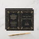 Design glamouroso com uma forma falsa de dintage dourada com o símbolo real Fleur-de-Lis, sobre um fundo preto texturizado com um padrão Art Deco. Use a ferramenta Personalizar para adicionar suas informações. Para ver os itens correspondentes, por favor, visite minha coleção de arte real Deco.