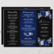 Elegante programa de casamento sobre o tema prata azul real, com elegante buquê de flores azuis, Marinhos, prata, cor branca pura, e folhas verdes de eucalipto. Entre em contato comigo para obter ajuda sobre a personalização ou se você precisar de outro produto com este design.