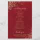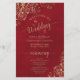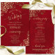 Estes programas de casamento são elegantes e saborosos, enquanto ainda são favoráveis ao orçamento. O design apresenta um arquivo de folha de papel falsa do ouro ornamentado com texto dourado em um fundo vermelho marmoreado. A tipografia apresenta uma caligrafia antiga em script, e há espaço para detalhes sobre a cerimônia, a festa noiva e um obrigado curto para você.