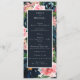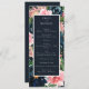 Elementos: marinhos, flores cor-de-rosa e escamosas com acentos verdes e laranja. Fontes de serif clássicas com acentos de script elaborados. Cores: azul marinho, azul empoeirado, azul real, rosa, pincel, verde, laranja, amarelo, branco. Temas: moderno, tradicional, vintage, clássico, jardim, botânico, inverno, escuro, outono. Coleção: Marinho Romântico Azul Espelho Cor-de-rosa Floral Tipo de Produto da Coleção de Casamentos Florais: Programa