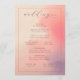 This wedding program features an elegant, minimalist design with a soft gradient background transitioning from peach to pink and purple hues. The layout is centered and vertically aligned, creating a balanced composition that highlights the ceremony schedule in clean, readable typography. A flowing script font introduces "welcome," while a bold serif typeface prominently displays customizable names at the bottom. The overall style exudes warmth and sophistication, making it perfect for formal weddings seeking a romantic and inviting atmosphere.