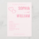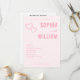 This wedding program features a soft pink color palette with a minimalist and elegant layout, perfect for a romantic celebration. The design includes two overlapping heart motifs and a clean typographic hierarchy, combining bold uppercase letters with playful script-like fonts to highlight the names of the couple. The organized ceremony schedule is presented in a simple sans-serif font, ensuring readability while maintaining a structured appearance. Ideal for couples seeking a sophisticated yet straightforward design, this template exudes simplicity, romance, and elegance, making it suitable for any wedding occasion.