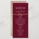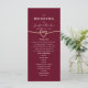 Elegante, minimalista, moderno, programa de casamento de burgundy de lado duplo com tipografia, com coração de corda de ouro romântico e simples roteiro de caligrafia.