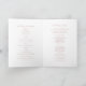 Folheto do programa do programa de casamento do tema do ouro-rosa. Compartilhe seus detalhes de casamento com este livreto do programa de casamento moderno e clássico. Este programa dobrado apresenta pontos falsos de configuração de folha rosa dourada com um script elegante e uma simples tipografia sobre fundo branco. Estes programas de casamento de folha de ouro são perfeitos para qualquer tema de casamento e estação. Personalize adicionando seus próprios detalhes.