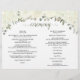 Este belo programa foi projetado para uma cerimônia católica. Ele apresenta um design bócio rústico com rosas de aquarela pintados manualmente e flores em tons de marfim, branco e creme. Há um crucifixo ou cruz, com elegante caligrafia verde-sábio ou guião oliva para os nomes dos casais e títulos. O dentro estendeu o espaço para todos os detalhes da cerimônia, enquanto o verso tem informações sobre a festa noiva junto com uma breve nota de agradecimento. É uma bela maneira de dar as boas-vindas aos seus convidados e facilitar-lhes o seguimento da cerimônia. Nota: Os programas são enviados como folhas de papel achatadas, você mesmo precisará dobrá-las.