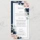 Projetado para coordenar com a nossa coleção de casamento Elegance, este elegante menu de casamento apresenta uma bela pincel de aquarela e marinho azul floral e prata eucalipto. Personalize-o fácil e rapidamente, basta pressionar o botão personalizar para reorganizar e formatar o estilo e a posição do texto. Duplo lado. Coordenando os itens disponíveis na loja do Feliz Cat Studio Zazzle! c) O Feliz Cat Studio