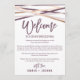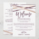 Essas serpentinas em rosa ouro com cartões de carta de boas-vindas e itinerário são perfeitas para um casamento moderno. O design sofisticado apresenta linhas que se cruzam em roxo ameixa, rosa desmaiado e folha de rosa ouro falsa para um visual geométrico. A frente do cartão apresenta uma carta de boas-vindas e o verso apresenta o itinerário do casamento. Essas notas são perfeitas para casamentos de destino e sacolas de boas-vindas para hóspedes de hotéis.