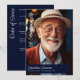 Este elegante programa memorial de celebração da vida em azul-marinho apresenta uma estética calorosa e sincera que homenageia lindamente a memória de um ente querido. A frente apresenta um layout de foto em página inteira acentuado por tipografia moderna manuscrita e serifa, com a frase "Uma Celebração da Vida" elegantemente colocada ao lado. O nome e as datas são exibidos em um banner azul-marinho, criando um contraste marcante, porém respeitoso. No verso, o fundo azul-marinho coordenado continua o tema sofisticado com uma "Ordem de Serviço" claramente organizada em fontes correspondentes, oferecendo segmentos sugeridos que mantêm um tom pessoal e edificante. Ideal para um evento de lembrança, este modelo combina estilo contemporâneo com sentimento sincero, tornando-o perfeito para criar uma homenagem significativa que celebra uma vida bem vivida.