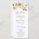 Programa de casamento floral russo do outono, com uma borda superior de flores e folhagem em forma de aquarela, em tons de marfim, creme, marrom e laranja. O buquê floral de outono é complementado por um moderno roteiro de caligrafia. Personalize a frente do programa de casamento floral do boho de outono com seus nomes, data do casamento e local, e ordem da cerimônia. O programa é revertido para exibir uma lista de sua festa de casamento. Projetado para coordenar com a nossa coleção de casamento Rustic Autumn Floral.