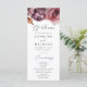 Programa de casamento floral russo do outono, com uma fronteira superior de flores e folhagem em forma de cachos de madeira em tons de marsala, burgundy, roxo, castanho e laranja. O buquê floral de outono é complementado por um moderno roteiro de caligrafia. Personalize a frente do programa de casamento floral do boho de outono com seus nomes, data do casamento e local, e ordem da cerimônia. O programa é revertido para exibir uma lista de sua festa de casamento. Projetado para coordenar com a nossa coleção de casamento Rustic Autumn Floral.