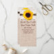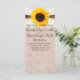 Ele tem um girassol bonito no topo com um design de fio impresso em cima do local impresso. O local, o fio e a burlap são apenas designs impressos, não tecido real. Adicione o texto do programa de casamento personalizado à frente e ao fundo desta modelo do programa de casamento. Use o botão "Personalizar" ou apenas adicione informações aos campos de modelo. Há muito espaço nas costas para informações e obrigados adicionais. Estes são projetados para combinar com estes convites para casamentos de burlap no país rústico: