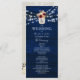 Mande seus convidados através de sua cerimônia em estilo com este programa de casamento azul de marinho rústico. Decorado com luzes brilhantes de cordas, sotaques florais e um monograma de jarro de pedras, este design de lado duplo inclui a ordem da cerimônia e os detalhes da festa de casamento. Uma combinação perfeita para o seu romântico tema de casamento do celeiro ou do país. Para obter ajuda para personalizar, envie um e-mail para bpkolman@gmail.com.