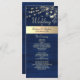 Este programa de casamento azul de marinho rústico contém luzes brilhantes de cordas e trabalho de arte floral de ouro delicado, perfeito para um casamento de inverno ou celeiro. Com espaço para detalhes da cerimônia, nomes de festas noivas, e um obrigado pessoal, este design elegante traz calor e charme para o seu dia especial.