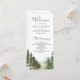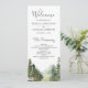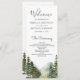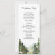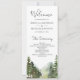 Elegante programa de casamento com belas montanhas e pinheiros com tipografia moderna.