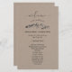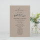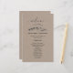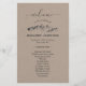 Belo design de papel do programa MOUNTAIN WEDDING apresentando um modelo de montanha esboçado e um grande "bem-vindo" em um roteiro elegante, assim como os detalhes do programa de casamento sobre um fundo texturizado em kraft rústico para você personalizar.
