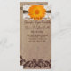 O topo tem uma margarida colorida de gerber laranja em cima de um lugar impresso e design de fio. O fundo é uma safra marrom texturizada com papel de aparência. Embora pareça texturizado, note que este é um programa impressão de 4" x 9" brilhante e suave. Este arco gêmeo é apenas um DESIGN IMPRESSO, não é um arco real. Você tem a aparência de um programa em camadas, mas pelo preço barato de um programa de casamento impresso (acabamento brilhante). Adicione o texto do programa de casamento personalizado à frente e ao fundo desta modelo do programa de casamento. Use o botão "Personalizar" ou apenas adicione informações aos campos de modelo. Há muito espaço nas costas para informações e obrigados adicionais. Estas são perfeitas para noivas que procuram programas de casamento rústicos, programas de casamento no país e programas de casamento vintage.