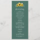 Este programa de casamento de girassol é perfeito para um casamento no campo. O design floral boêmico apresenta girassóis amarelos, flores cor-de-rosa pinceladas e verde-caçador de eucalipto verde em aquarela com um elegante e moderno sentimento de bolho. Inclua o nome da noiva e do noivo, a data e o local do casamento, a mensagem do obrigado, a ordem do serviço, a festa noiva e um memorial "em memória amorosa" opcional.