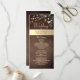 Guie os convidados através da sua cerimônia com este elegante programa de casamento rústico com luzes de cordas de ouro falsas, delicado local floral e um fundo de textura de madeira quente. Ideal para o outono ou casamentos no inverno, locais de celeiro, ou celebrações românticas de feto. Personalizável com nomes de festa de casamento e detalhes de linha do tempo.