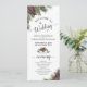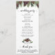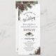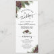 Este programa de casamento é simples, elegante, rústico e bonito. Ele apresenta um design de aquarela pintada manualmente com ranhuras de ramificações de pínus e pinecones. A tipografia apresenta uma caligrafia antiga, que oferece um ar de elegância e sofisticação e, ao mesmo tempo, ainda está na terra e na casa. Tem espaço para os detalhes da cerimônia, assim como a festa de casamento e um obrigado curto. Perfeito para o exterior ou casamento no inverno.