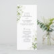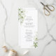 This organic greenery wedding program features a clean vertical layout that guides guests naturally through the ceremony, balancing airy white space with hand-painted botanical artwork.