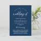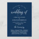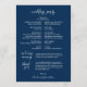 Este é o cartão do programa da cerimônia de casamento, no elegante tema do roteiro Azul Marinho . Ele foi projetado com sotaque de rolagem que pode ser personalizado com texto personalizado/ personalizado para seu partido noiva, detalhes da cerimônia, notas memoriais e mensagem de obrigado.