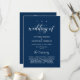 Este é o cartão do programa da cerimônia de casamento, no elegante tema do roteiro Azul Marinho . Ele foi projetado com sotaque de rolagem que pode ser personalizado com texto personalizado/ personalizado para seu partido noiva, detalhes da cerimônia, notas memoriais e mensagem de obrigado.