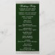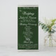 Esta design romântica apresenta uma elegante história esmeralda com fronteiras de fita, detalhes da cerimônia de casamento e obrigado você na frente com os membros da festa de casamento na parte de trás. Disponível em várias cores para seu tema de casamento. (A fita é simulada na trabalho de arte). Disponível em várias cores para as cores do tema do casamento. (A fita é simulada na trabalho de arte). Concebido para coordenar com a Coleção Caseira "Dois Tornar-se-ão Um - Prateado e Dourado". Para alterar os detalhes, clique em "Personalizar". Para mover o texto ou alterar o tamanho, a fonte ou a cor do texto, clique em "Clique para personalizar mais"