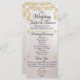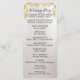 Esta design romântica apresenta um elegante fundo branco pérola e borda de folhas de ouro, detalhes da cerimônia de casamento e obrigado você na frente com os membros da festa de casamento na parte de trás. Disponível em várias cores para seu tema de casamento. Disponível em várias cores para seu tema de casamento. Projetado para coordenar com a Coleção de Casamentos de Doves Elegantes, Coração e Folhas Douradas. Para alterar os detalhes, clique em "Personalizar". Para mover o texto ou alterar o tamanho, a fonte ou a cor do texto, clique em "Clique para personalizar mais"