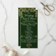 Esta design romântica apresenta um elegante fundo verde esmeralda e borda de folhas de ouro, detalhes da cerimônia de casamento e obrigado você na frente com os membros da festa de casamento atrás. Disponível em várias cores para seu tema de casamento. Disponível em várias cores para seu tema de casamento. Projetado para coordenar com a Coleção de Casamentos de Doves Elegantes, Coração e Folhas Douradas. Para alterar os detalhes, clique em "Personalizar". Para mover o texto ou alterar o tamanho, a fonte ou a cor do texto, clique em "Clique para personalizar mais"