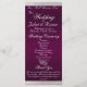 Esta design romântica apresenta um elegante fundo roxo com bordas de fita, detalhes da cerimônia de casamento e obrigado você na frente com os membros da festa de casamento na parte de trás. Disponível em várias cores para seu tema de casamento. (A fita é simulada na trabalho de arte). Disponível em várias cores para as cores do tema do casamento. (A fita é simulada na trabalho de arte). Concebido para coordenar com a Coleção Caseira "Dois Tornar-se-ão Um - Prateado e Dourado". Para alterar os detalhes, clique em "Personalizar". Para mover o texto ou alterar o tamanho, a fonte ou a cor do texto, clique em "Clique para personalizar mais"