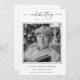 Lembre-se do seu amado com nosso Programa de Ordem de Serviço Memorial do Funeral do Script. Este programa simples e barato é uma bela maneira de honrar a sua vida. Ele apresenta um design limpo e moderno com espaço para uma foto, detalhes de serviço e uma mensagem especial. A letra de escrita suave adiciona um toque gentil e amoroso. Esta folga funerária ajuda a orientar a família e os amigos através do serviço. Ele serve como uma guarnição que eles podem manter para sempre. Quer esteja planejando uma celebração da vida ou um adeus tranquilo, este programa é uma maneira sincera de dizer, "Você está sempre em nossos corações."