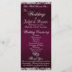 Esta design romântica apresenta um elegante fundo roxo com bordas brilhantes, detalhes da cerimônia de casamento e obrigado você na frente com os membros da festa de casamento na parte de trás. Também disponível com diferentes planos coloridos para as cores do tema do casamento. (O brilho é simulado no trabalho de arte). Concebido para coordenar a Coleção de Casamentos "Dois Tornar-se-ão Um - Corações, Doves & Glitter". Para alterar os detalhes, clique em "Personalizar". Para mover o texto ou alterar o tamanho, a fonte ou a cor do texto, clique em "Clique para personalizar mais"
