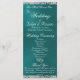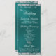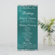 Esta design romântica apresenta um elegante fundo teal com bordas reluzentes, detalhes da cerimônia de casamento e obrigado você na frente com os membros da festa de casamento na parte de trás. Também disponível com diferentes planos coloridos para as cores do tema do casamento. (O brilho é simulado no trabalho de arte). Concebido para coordenar a Coleção de Casamentos "Dois Tornar-se-ão Um - Corações, Doves & Glitter". Para alterar os detalhes, clique em "Personalizar". Para mover o texto ou alterar o tamanho, a fonte ou a cor do texto, clique em "Clique para personalizar mais"