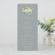 Um programa/ordem de cerimônia de casamento azul-esverdeado, com um buquê/poste de groselhas de neve pintadas manualmente e eucalipto na frente e uma coroa nas costas. Todo o texto é totalmente editável. Veja esta Coleção na minha loja para programas com texto de alternativo e em tamanhos/cores/formas diferentes. Itens de coordenação também disponíveis.