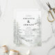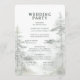 Este programa de casamento apresenta um design sereno e inspirado na natureza com um layout vertical e cores pastéis suaves. O fundo é bege claro, complementado por tons verdes e cinzas suaves em ilustrações de árvores em aquarela que criam uma atmosfera etérea. A tipografia elegante destaca os detalhes do evento, com espaços personalizáveis para nomes, datas e locais, garantindo clareza e sofisticação. O estilo geral é minimalista e tranquilo, perfeito para celebrar uma cerimônia de casamento formal cercada pela beleza natural.
