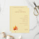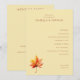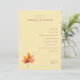 This wedding program features a minimalist and elegant design with a soft beige background, creating a serene and inviting atmosphere. The layout is clean and balanced, showcasing a list of ceremony events in a classic serif font that adds traditional charm. A single autumn leaf illustration in warm hues of red, orange, and yellow anchors the bottom left corner, adding an organic touch to the structured text. Perfect for formal weddings, this design combines simplicity with subtle sophistication, making it ideal for couples seeking a timeless aesthetic.