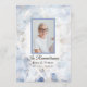 Lembre-se do seu amado e comemore sua vida com o bonito Programa de Memória Funeral da Flor Azul Tinada. Esta elegante linha do tempo do serviço de tributo à morte por floração personalizada apresenta uma fotografia floral pintada por uma coloração aquosa digital de um cravo branco com uma tonalidade azul-clara. Personalize-o com uma fotografia do falecido, das datas de nascimento e morte e da ordem da cerimônia de celebração do serviço da igreja.