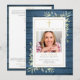 Um programa memorial de funeral de serviço cristão personalizado com folhagens em um fundo de painéis de madeira azul rústico. Criado por Thisisnotme©