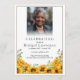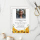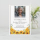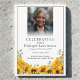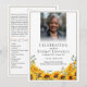 Um belo e elegante programa de funeral de dois lados adornado com lindos girassóis amarelos.