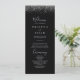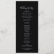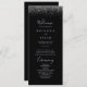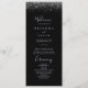 Este programa de casamento de relva é perfeito para um casamento rústico. O simples e elegante design apresenta um confete prateado em um fundo preto.