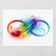 Símbolo infinito desenhado artificialmente com uma bela pena arco-íris sobre fundo branco. Tatuagem.