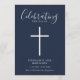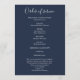 Personalize este programa simples e elegante com o nome e a mensagem para o seu amado abandonado. Honra e comemore a vida de seu amado com esta modelo moderna com um roteiro branco elegante em um histórico azul clássico. Fácil de personalizar. As nossas sentidas condolências e orações estão convosco durante este período muito difícil.
