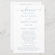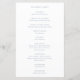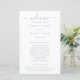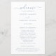 Simples programa de casamento com um design limpo e minimalista com um toque elegante com a palavra "bem-vindo" em roteiro com supressões. Um design moderno com texto azul empoeirado sobre fundo branco. Estes programas de casamento baratos são impressos em folhas de papel para uma opção econômica.