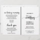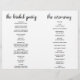 Este simples programa de casamento de caligrafia branca e negra é perfeito para um casamento rústico ou moderno. A design minimalista apresenta uma elegante letra de escrita de pincel e um adorável coração feminino. Inclua o nome da noiva e do noivo, a data e o local do casamento, uma citação curta, a mensagem do obrigado, a ordem do serviço, a festa noiva e um memorial "em memória amorosa". Observe que esses programas chegam achatados, você precisará dobrá-los ao meio quando chegarem.